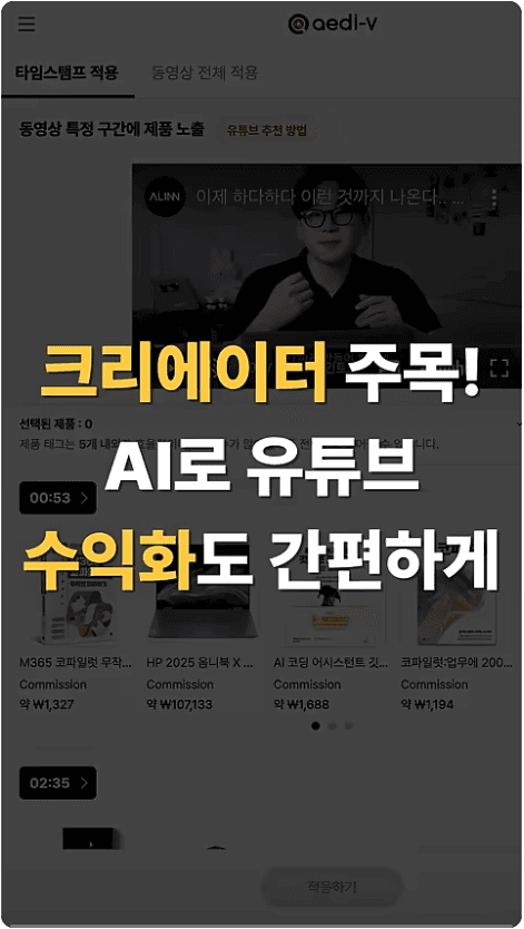 영상 하나 당 적절한 제품 링크 찾는데 30분 이상 걸렸는데, 에디브이를 사용하고 5분 안에 쇼핑 링크를 달 수 있게 됐어요.